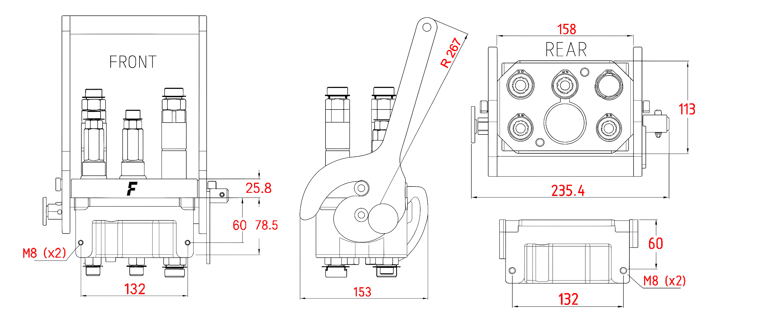 - Žemės ūkio, statybinė ir miško technika: darbinių priedų prijungimui (pvz., plūgai, hidraulinės rankos, spaustuvai …), kuriems reikia kelių hidraulinių linijų.