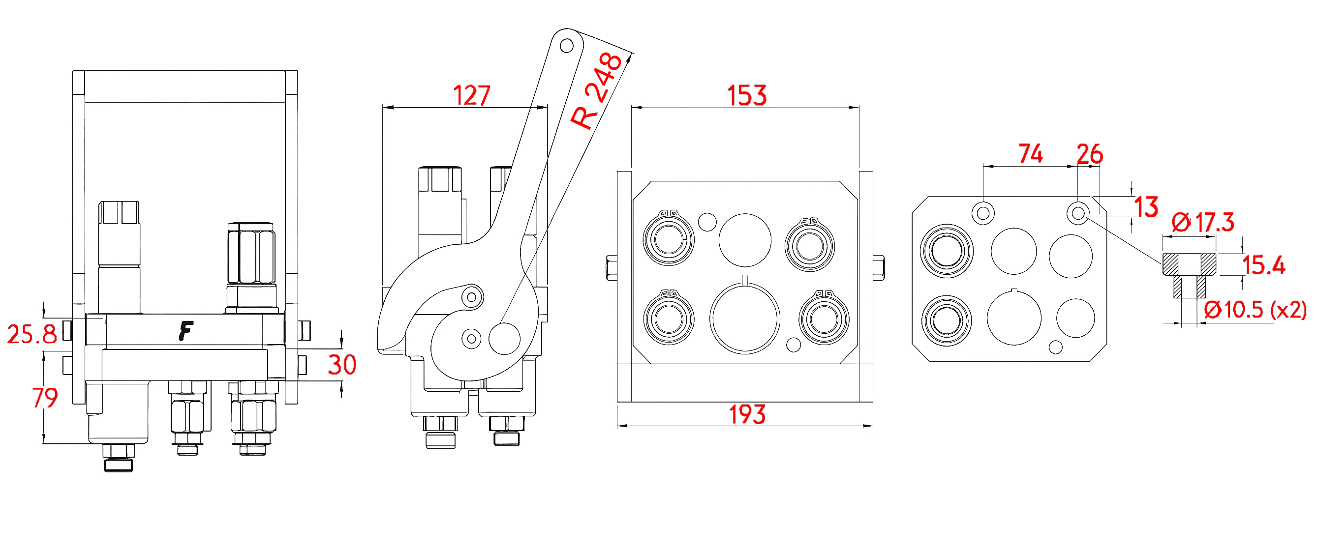 - Žemės ūkio, statybos ir miško technika: darbo įrangos prijungimui (pvz., plūgai, hidraulinės svirtys, žnyplės …), kuriems reikalingos kelios hidraulinės linijos.