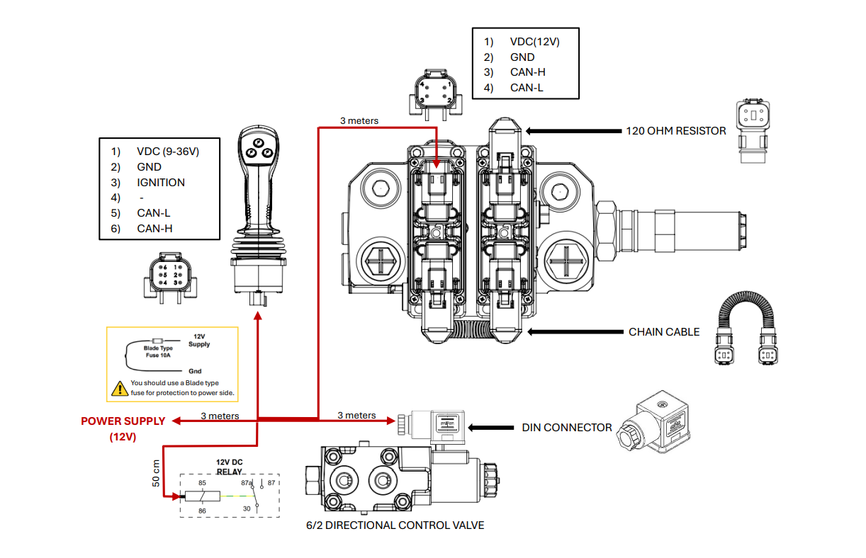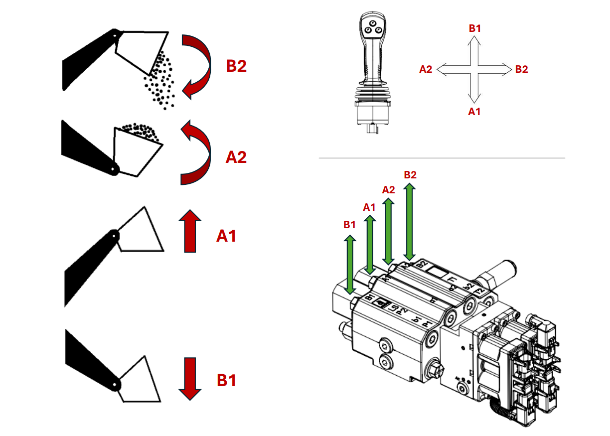 Súprava obsahuje ventil, proporcionálny ovládací joystick a elektrické káblovanie.