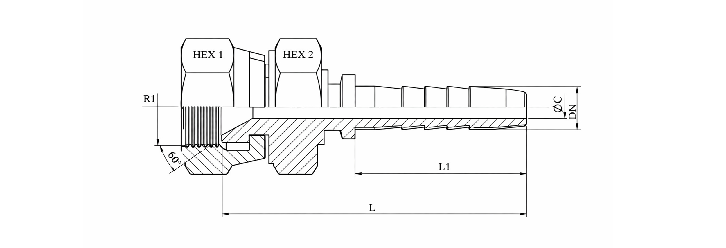 HYDRAULICKÁ PRÍPOJKA JIS Japanese 60° KOMATSU SAMICA DN8–M16×1,5